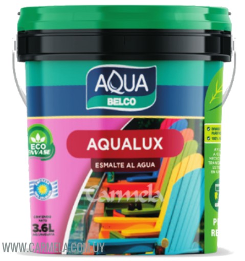 - AQUALUX esmalte al agua, nuestra amplia dedicación y búsqueda por proteger el medio ambiente nos llevó a crear un producto ajustado a los criterios de protección medio ambiental, no deja olor, muy fácil de aplicar y de secado ultra rápido.