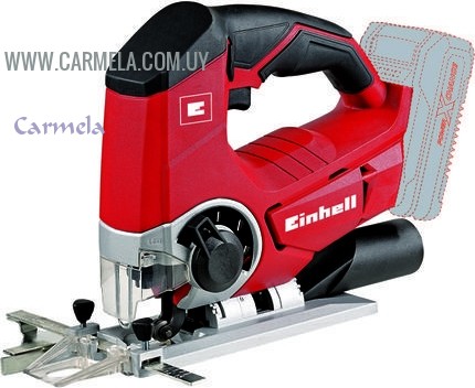 La sierra de calar inalámbrica TE-JS 18 de Einhell es parte de la familia Power X-Change y funciona con baterías de iones de litio con un sistema de administración de baterías para una larga vida útil.