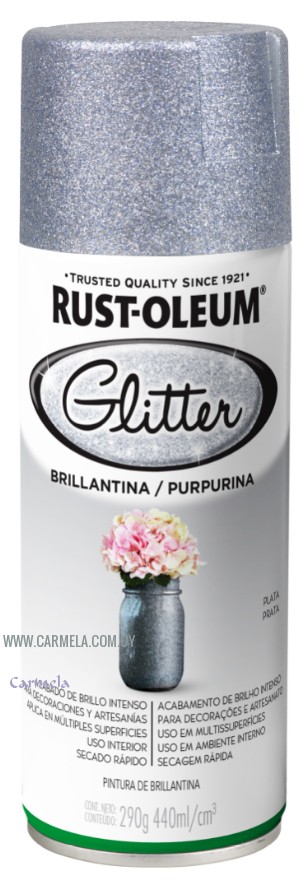 Rust Oleum Glitter es un acabado de brillantina en aerosol que deja destellos brillantes de color en cualquier tipo de proyecto decorativo. Se puede aplicar sobre prácticamente cualquier superficie como madera, metal, mimbre, vidrio, cerámica, goma espuma, goma eva, papel, cartón, plástico y más.