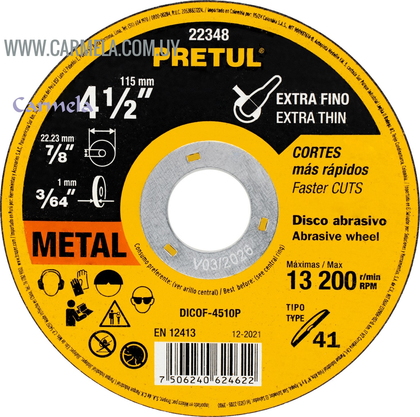 - Disco Tipo 41 de 4 1/2'' x 1 mm Pretul