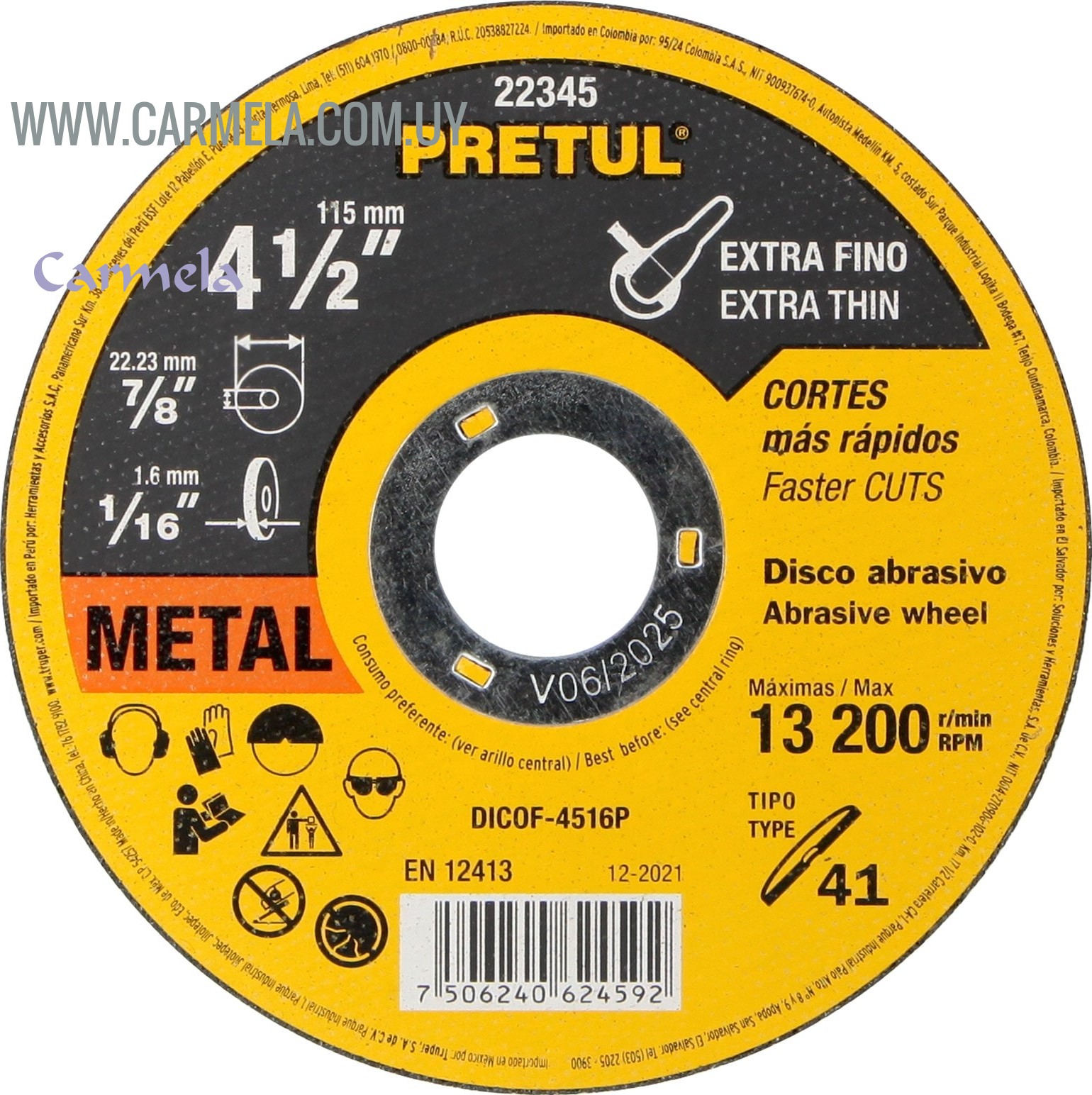 - Disco Tipo 41 de 4 1/2'' x 1.6 mm Pretul