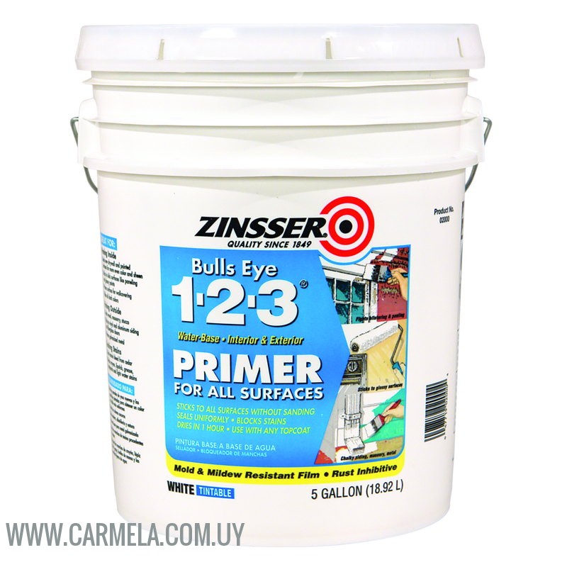 Zinsser 1-2-3 es un imprimante Sellador Base Acuosa el cual está diseñado para promover la adherencia en superficies poco porosas como: Aluminio, Galvanizado, Azulejos, Cerámico, Esmaltes Brillantes, etc.