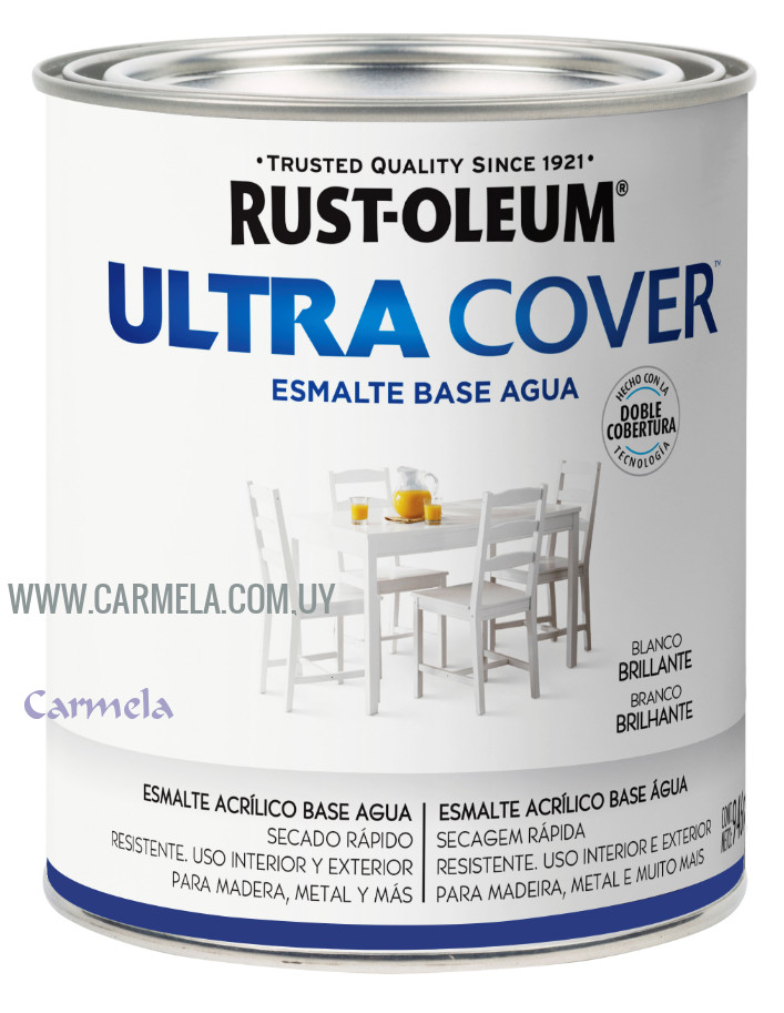 Rust-Oleum Ultra Cover es una pintura base agua, multipropósito y ultra cubritiva de secado rápido. Su fórmula de alta calidad se aplica más fácilmente con brocha o pincel y oculta mejor las imperfecciones. Completa el proyecto en menos tiempo y en menor cantidad de capas, por lo que es la opción ideal tanto para expertos como para proyectos de tipo DIY.