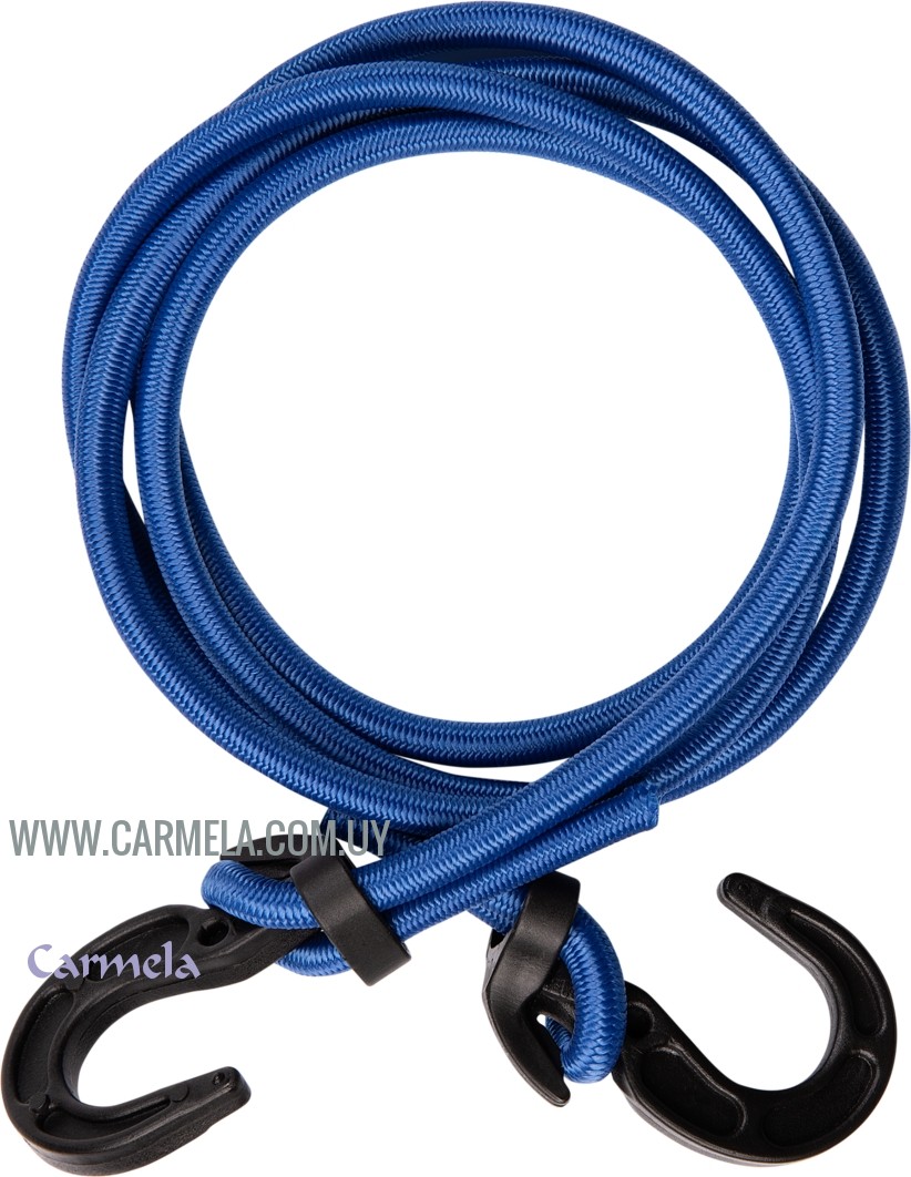 Para fijar y sujetar cargas livianas, el cordón elástico Tramontina con ganchos plásticos es el artículo ideal. Con ganchos resistentes fabricados en PVC, tiene 1,5 metros de largo y se puede usar en automóviles, motos y bicicletas.