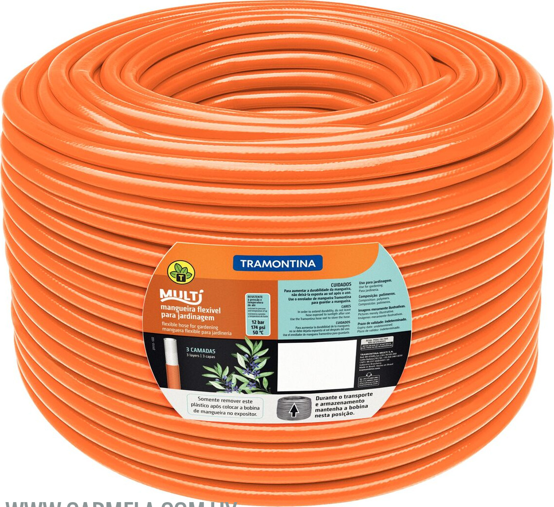 - Para mayor resistencia, tiene tres capas distintas: interna de PVC, intermedia de hilo poliéster trenzado y externa de PVC.