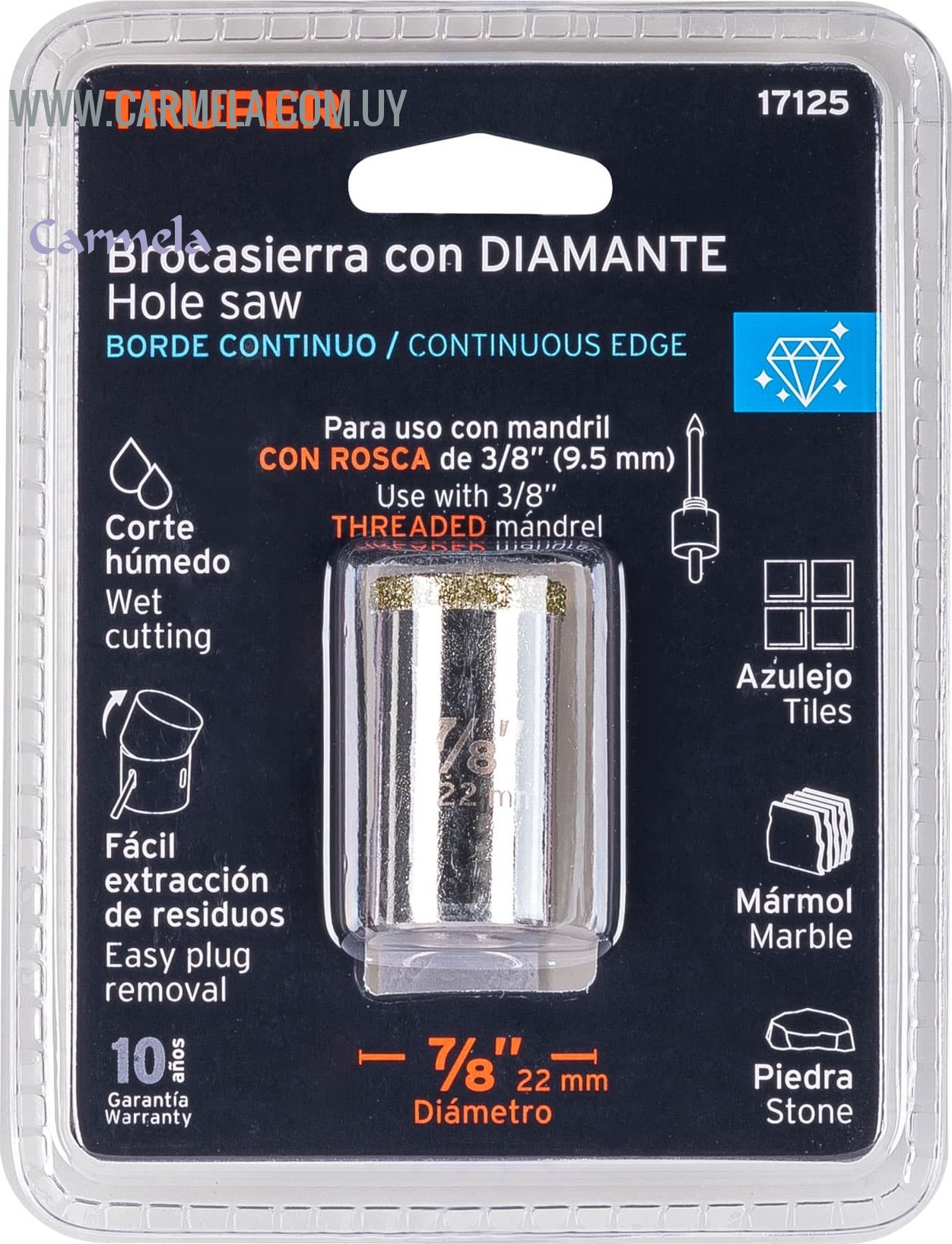 - Compatible con mandril para brocasierras diamante (MAN-3/8I)