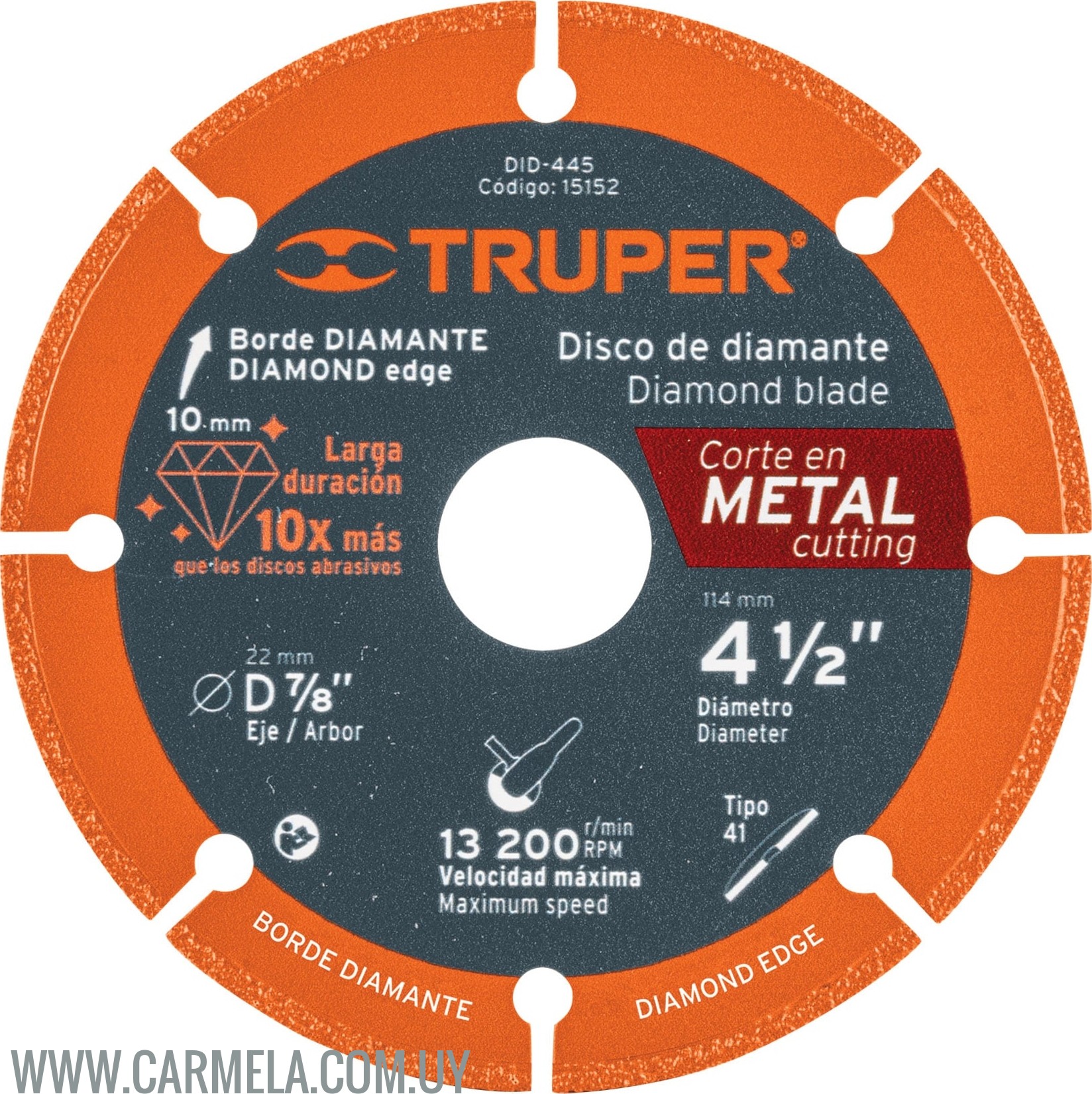 - Para corte de acero, aluminio, hierro, cobre, acero inoxidable