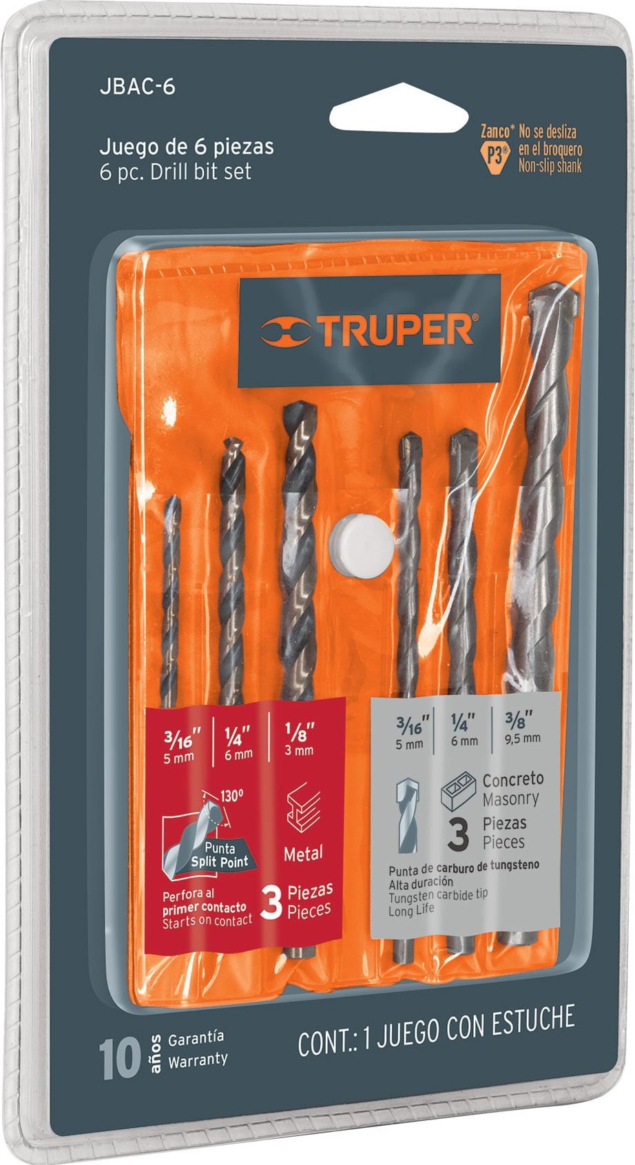 - 3 Brocas para metal HSS 3/16" y 1/4" con zanco P3, fabricadas en acero M2 de larga duración con flauta en acabado óxido negro