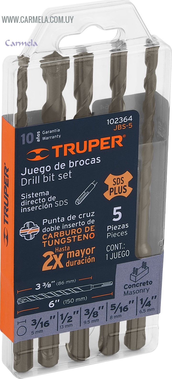 - Juego de 5 brocas para concreto SDS Plus Truper
