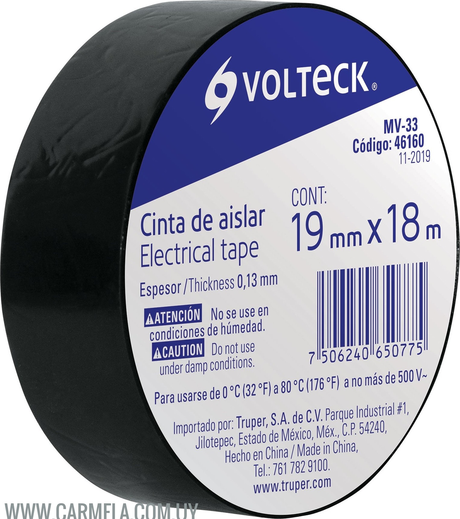 - Cinta de aislar de PVC de 19 mm negra Volteck